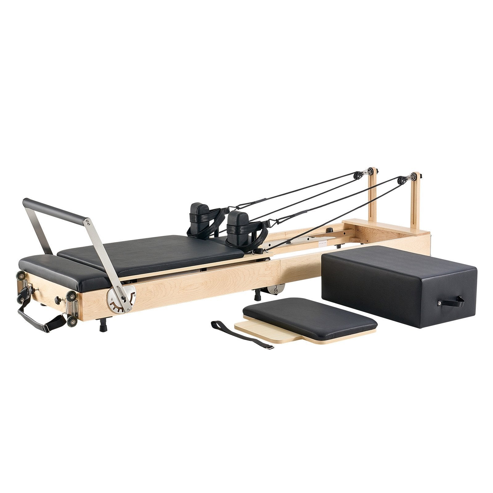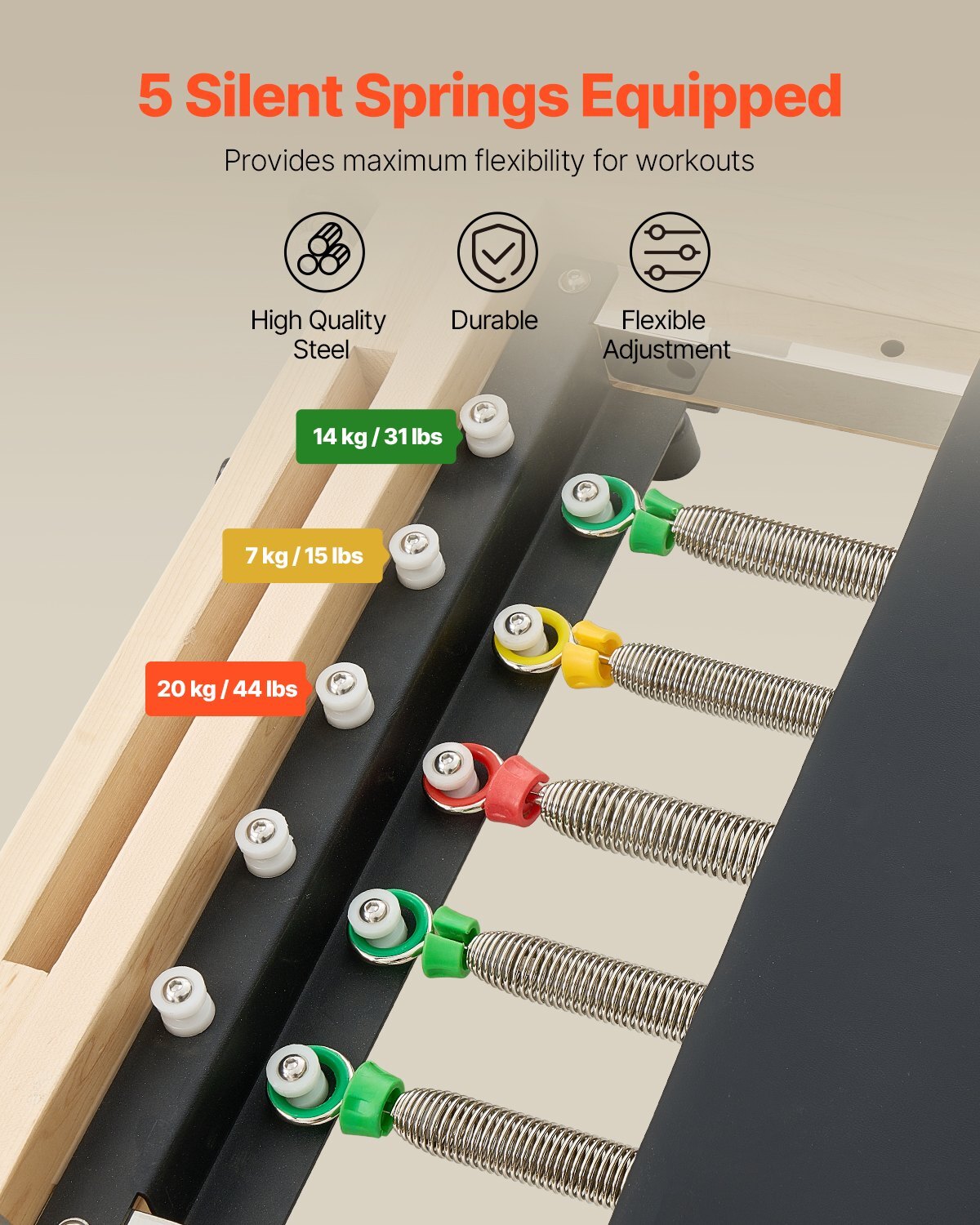 VEVOR Foldable Pilates Reformer, Wooden Pilates Workout Machine forHome Gym Studio Use, Pilates Bed with Dual Resistance- Spring &Cord, Reformer Set with Sitting Box, Up to 400 LBS