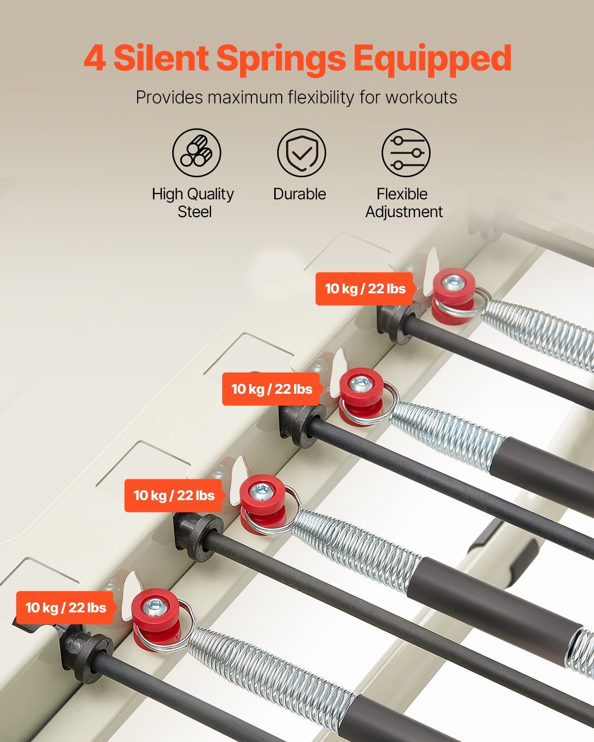 VEVOR Foldable Pilates Reformer, Pilates Workout Machine for HomeGym Studio Use, Pilates Bed with Dual Resistance- Spring & Cord,Reformer Set for Advanced Users and Beginners, Up to 400 LBS